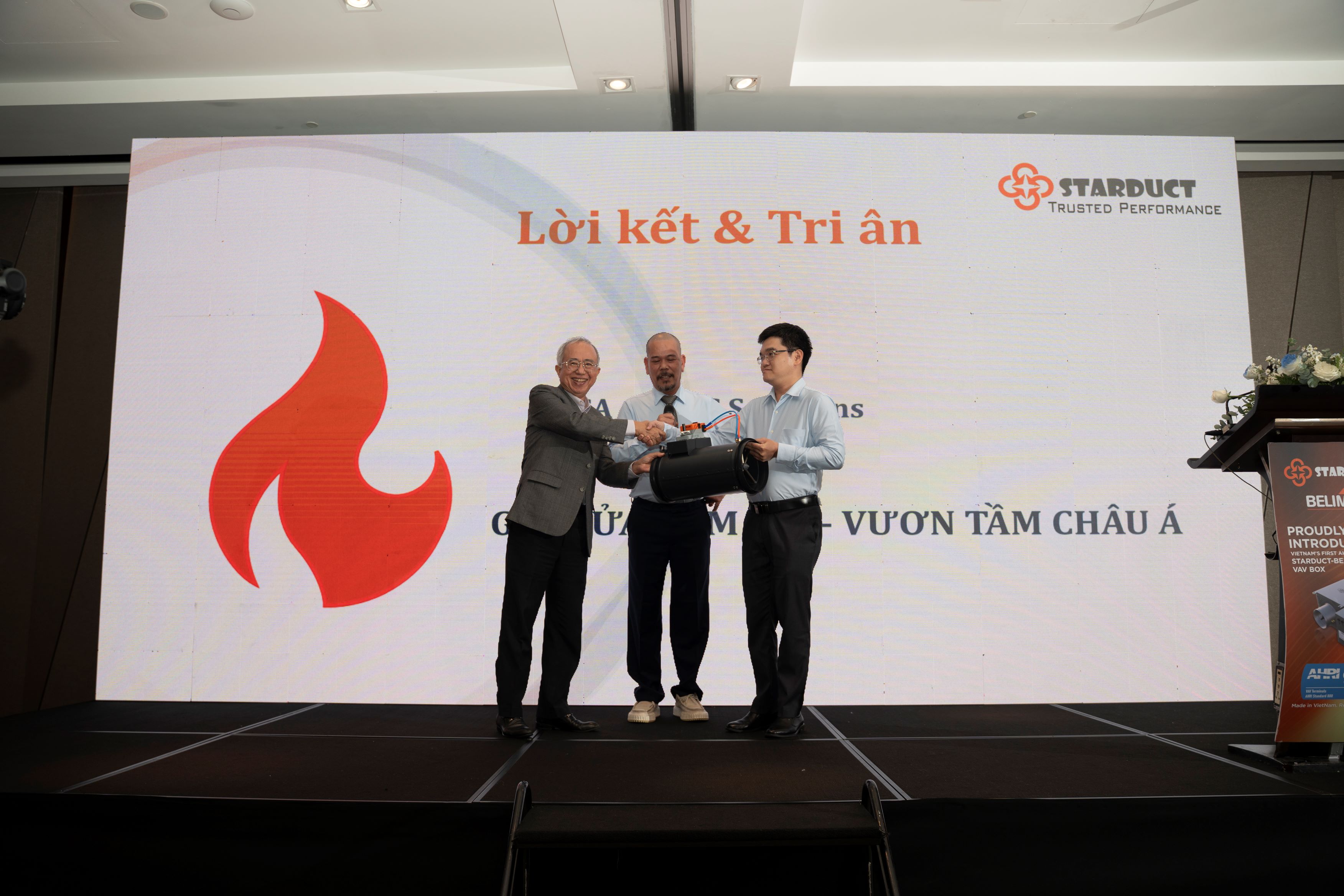 As part of the ceremony, Star Asia JSC presented the Starduct–Belimo VAV Box demonstration unit to the Department of Thermal Engineering and Refrigeration, Ho Chi Minh City University of Technology, as an educational training model for students. This meaningful gesture aims to strengthen the connection between industry and academia, offering HVAC students the opportunity to gain hands-on experience with high-tech terminal products proudly made in Vietnam, and contributing to the development of future generations of HVAC engineers in the country.